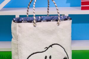 ふんわりやわらかなボア素材シリーズ。ラージサイズの白いボアにはスヌーピー、ミドルサイズの黒いボアにはウッドストックの刺しゅうをオン。トートバッグの内側は「Peanuts Happy Pals」の柄になっており、その日の気分やコーディネートに合わせて2種類のデザインをお楽しみいただけるリバーシブルトートです。