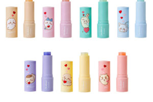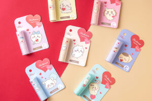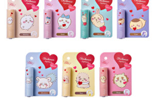 ちいかわ(ミルクティーの香り)、ハチワレ(ピーチの香り) 、うさぎ(メロンの香り) 、くりまんじゅう(グレープの香り) 、モモンガ(ブルーベリーの香り) 、ラッコ(ユズの香り) 、シーサー(マンゴーの香り)の全7種類がラインアップされミルクティーやフルーツの甘やかな香りのなめらかな質感のリップです。