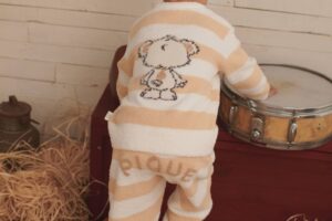 パンツのバックスタイルと裾にもスヌーピーのプリントを配置し、後ろ姿までデザインを楽しめます。