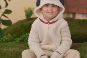 ブランドアイコンでもあるもこもこのボーダーパーカを身体にあてて、どれを着るか選んでいるスヌーピーとボーダーパーカを着たサリー・ブラウン。枕を持ってあくびをしているスヌーピー、アイスクリームを抱えて食べるチャーリー・ブラウンと、見ているだけで癒される、本コレクションオリジナルのアートをあしらった特別なアイテムに仕上がりました。