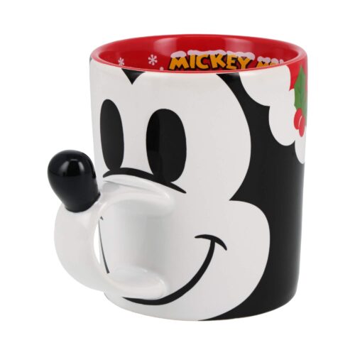 サンタ帽をかぶったミッキーとミニーのデザインです。カップ全体にオールドスタイルのミッキーの顔をデザインし、持ち手が鼻になっているユニークなデザインになっています。