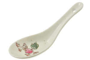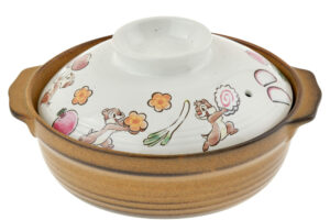 土鍋は、キャラクターや食材を“和”の雰囲気を感じる水彩タッチでぐるりと一周に描いた蓋と、シックな色味の鍋で組み合わせました。お鍋の取り皿や小鉢としても使えるとんすいは、手に収まりやすい大きさで持ちやすく、磁器特有の滑らかな質感も魅力です。れんげは、鍋料理はもちろん、麺類や丼物などを食べる時にも便利です。