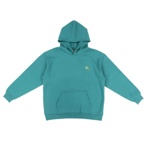 グリーンのパーカーには、お腹にポケットを装備。胸元に倒れたハチミツのつぼがデザインされ、プーさんらしさをさりげなく演出します。
