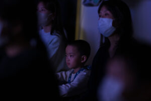 劇場公開中の作品を映画館以外の会場で上映する特別なプログラム。赤ちゃんから19歳までの幅広い年齢のこどもと家族、52名が参加しました。