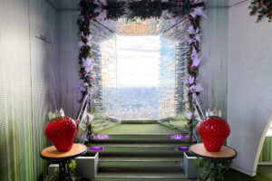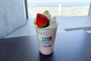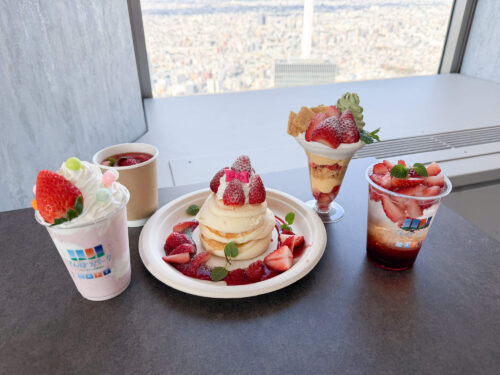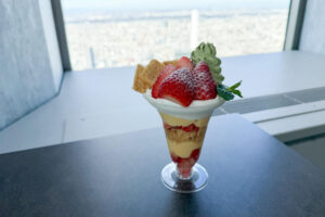 いちごデコレーションから東京の街並みを見下ろすことができます。
