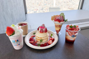 てんぼうパークCAFEでは、栃木県産の大粒プレミアム苺「スカイベリー」などを使用したスイーツやドリンクなど、苺をふんだんに使用したメニューを期間限定で提供します。
