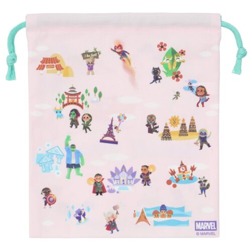 世界の国々には、アベンジャーズたちマーベルヒーローも訪れている様子。世界を旅する賑やかなデザインです。