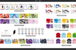 グッズラインナップは、アクリルスタンド、ランダムメタルカード、ランダムグリッター缶バッジ、アクリル缶バッジフレーム、ステッカーセット、A3タペストリー、ミニギフトセット、リボンバッグチャーム、ラバーマットケース、ラバーマット、カードスリーブ&デッキケース、アクリルライトパネル、クリアファイル、ポンチョの14種類です。