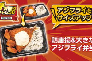鶏唐揚に、サイズアップしたアジフライを組み合わせた、主菜のボリューム感を楽しめるお弁当です。