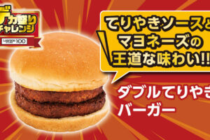ハンバーグを2枚サンドした、食べ応え大満足のてりやきバーガーです。