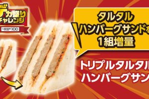 ハンバーグサンドを1組増量。タルタルソースとトマトソースの味わいが楽しめます。