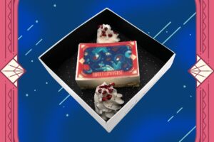 CHEESECAKE UNIVERSE(750円)は、フェアイラストが描かれた、ここでしか味わえないオリジナルチーズケーキ。ほどよい酸味が癖になる美味しさ。