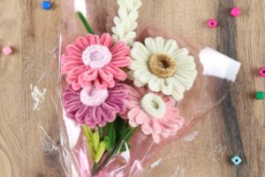 フラワーミッフィーオリジナルブーケペーパーでラッピングします。