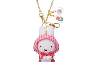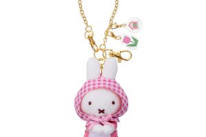 「ブルーナちょっこりサンキューマスコット」に、ギンガムチェックの頭巾と白いエプロンを着用した新たなデザインが登場します。付属のクラフト製の紙タグに記載されている花言葉は、ミッフィーのお花屋さん「Flower Miffy」が監修しました。