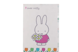 「チューリップの日」に合わせたデザインの、書類や郵便物をまとめるのに便利なクリアファイル(627円)。表面はシンプルに、裏面は華やかな総柄の両面楽しめるデザインに仕上げました。Flower Miffy POP UP SHOP限定デザインが、コレクション心をくすぐります。