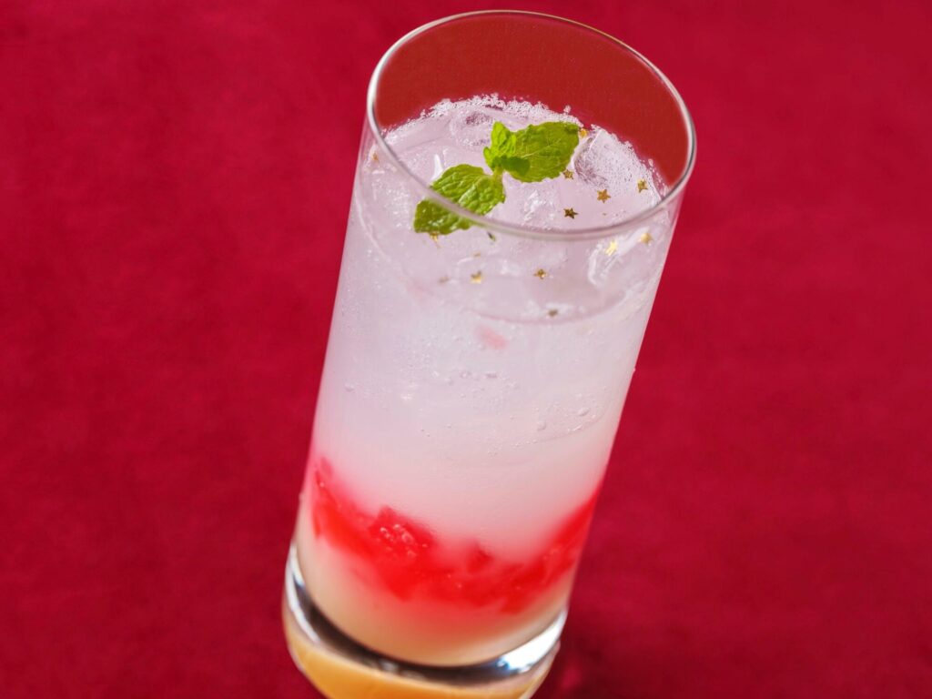 スパークリングカクテル(ラム、乳酸菌飲料、アプリコット)(1,600円)東京ディズニーリゾート「ディズニー・クリスマス」メニュー