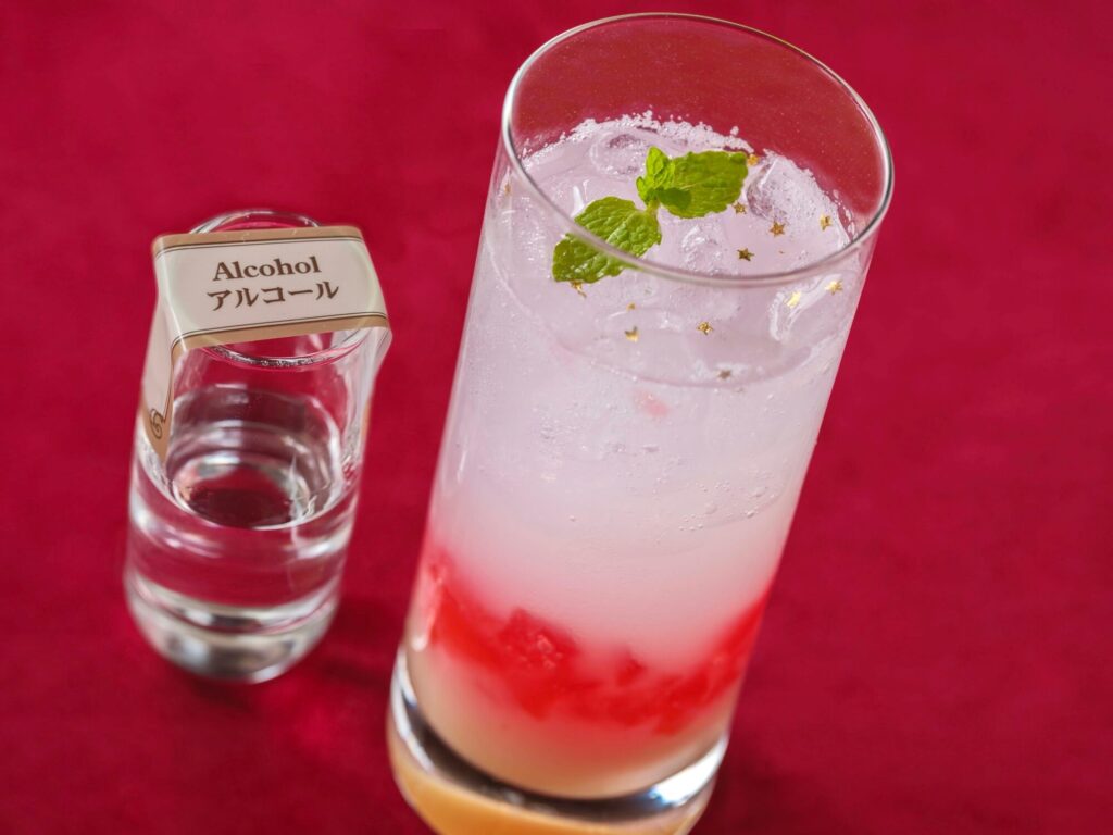 スパークリングカクテル(ラム、乳酸菌飲料、アプリコット)(1,600円)東京ディズニーリゾート「ディズニー・クリスマス」メニュー