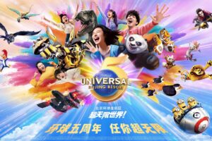 ユニバーサル・スタジオ・北京が5周年 キャラいっぱいのアニバーサリーアートを公開