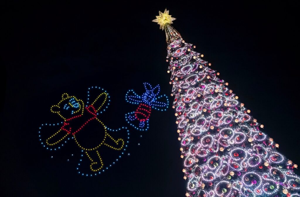 香港ディズニーランド20周年のクリスマス サンタグーフィーのドローンショーやグリーティングを開催