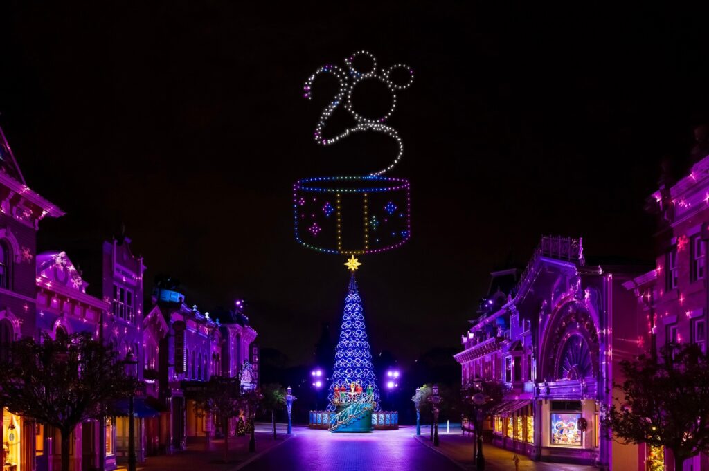 香港ディズニーランド20周年のクリスマス サンタグーフィーのドローンショーやグリーティングを開催