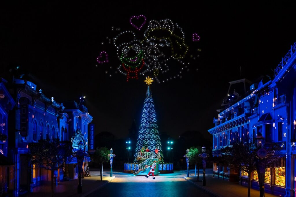 香港ディズニーランド20周年のクリスマス サンタグーフィーのドローンショーやグリーティングを開催