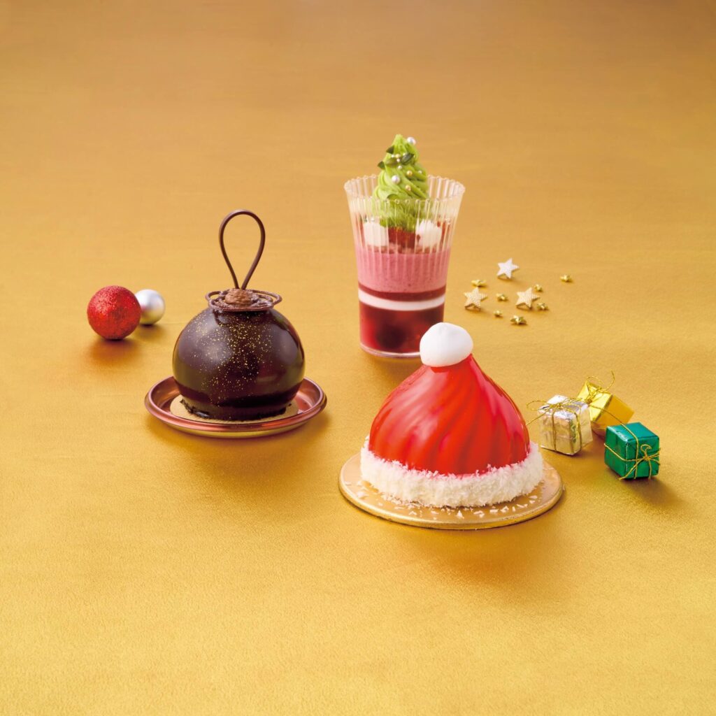 クリスマス・パフェ ~ベリー&ピスタチオ~(950円) サンタクロース ~キャラメル&ラズベリー~(950円) ムース・オ・ショコラ ~オランジェ&カルダモン~(900円)