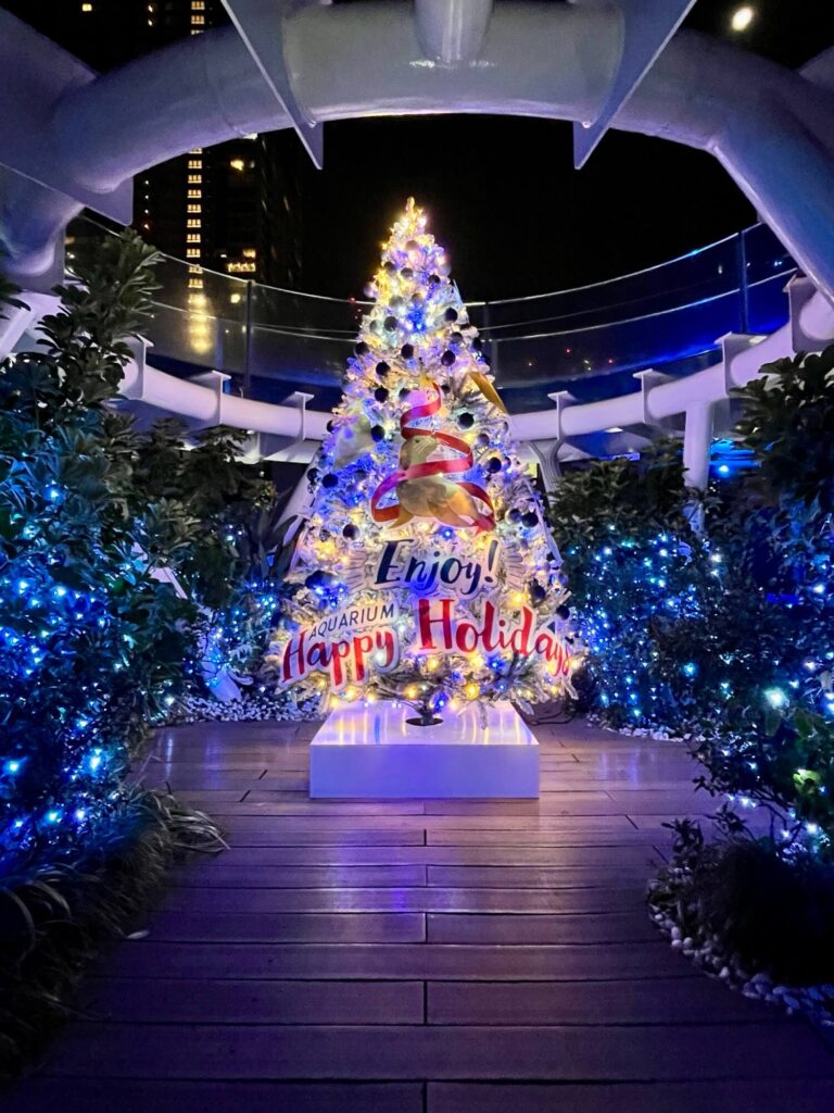 水槽にサンタダイバーが登場 サンシャイン水族館のクリスマスイベント